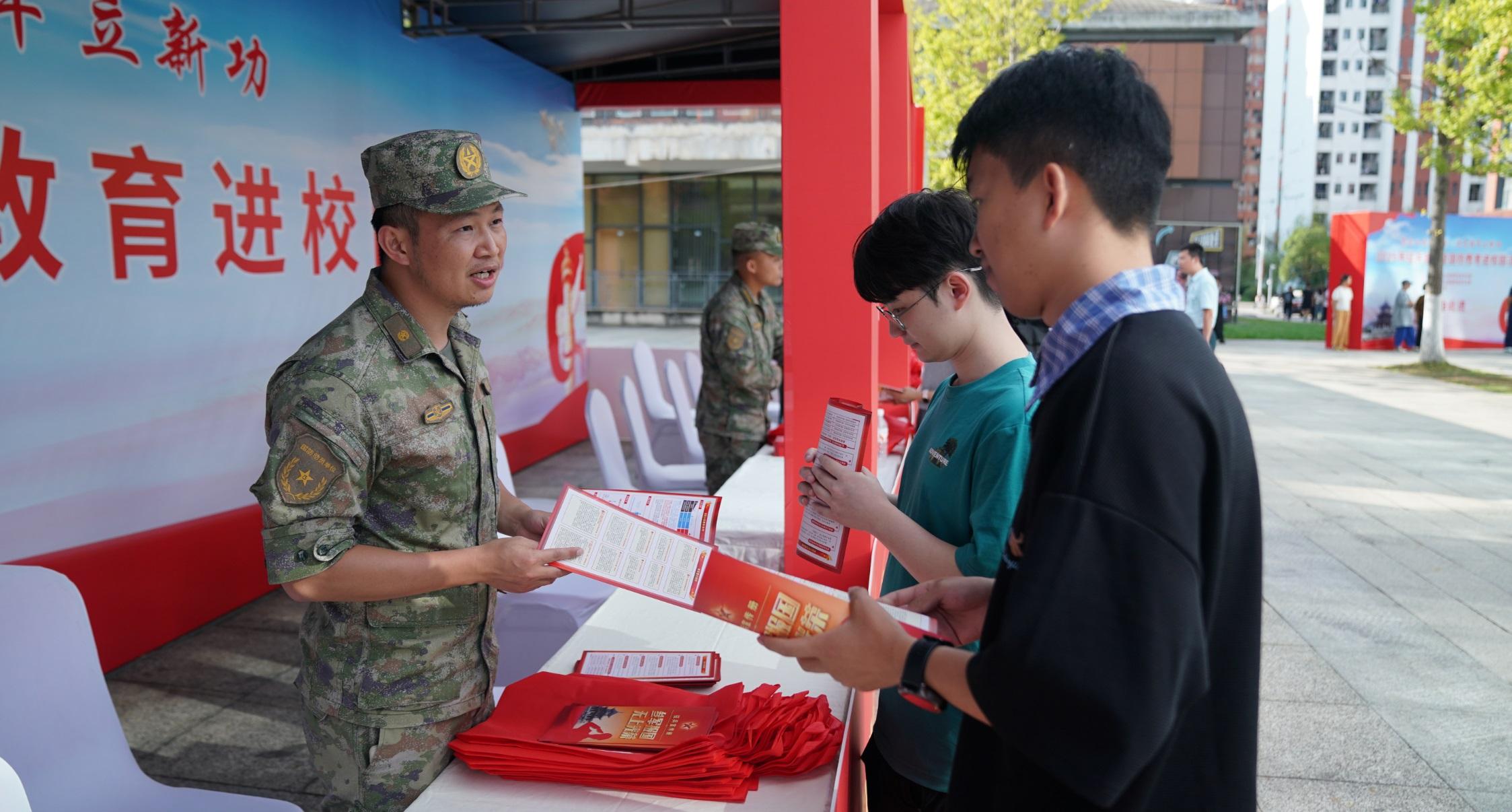 此外,征兵宣传暨国防教育进校园活动也在剧场外有序展开。校园内设置的国防教育展板和征兵政策咨询点上,来自各区(市、县)的征兵工作人员向师生们详细介绍征兵政策、宣传国防知识,吸引了众多学生驻足咨询,不少学生表示深受触动,心中燃起了参军报国的热情。
