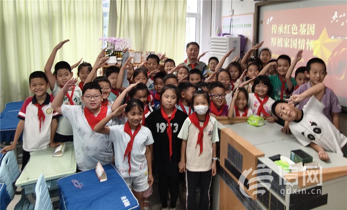 关爱未成年人成长,推进全环境立德树人,是道德模范刘统国国防教育宣讲的重要组成部分。在青岛重庆路第二小学、青岛李沧路小学,刘统国用孩子们听得懂、感兴趣的语言,分别为四年级、三年级学生搭建起通往国防知识的桥梁。他从“什么是国防”的基础问题切入,结合“守卫家园就像保护自己的书包和文具”的生动类比,让抽象的“国防”概念变得具体可感。随后,又沿着我国国防事业发展脉络,从革命时期的艰难抗争讲到新时代的科技强军,深受学生欢迎。