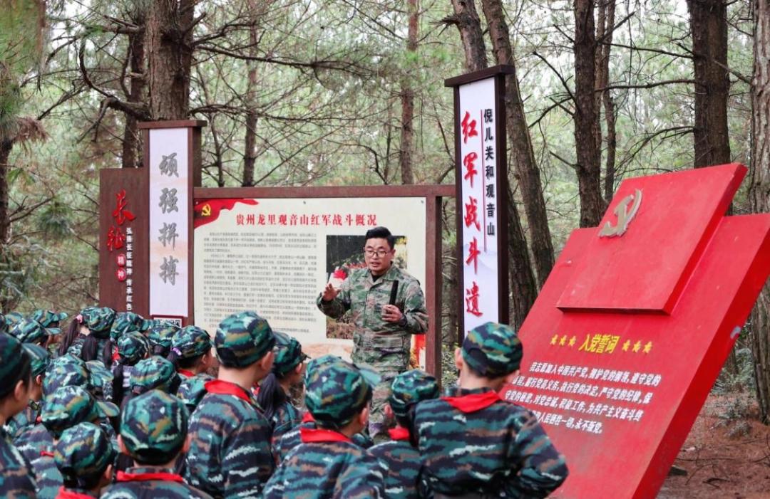 今年是红军长征胜利90周年,红色研学之旅更是让国防教育直抵心灵,队员们怀着崇敬之心循着革命先辈的足迹重走1935年观音山红军战斗遗址,在遗址石碑前聆听红军激战湘黔公路的峥嵘往事,在沉浸式体验中感悟长征精神的磅礴力量,队员们一边聆听长征故事,一边认真记录感悟,红色基因在行走的课堂中悄然传承。