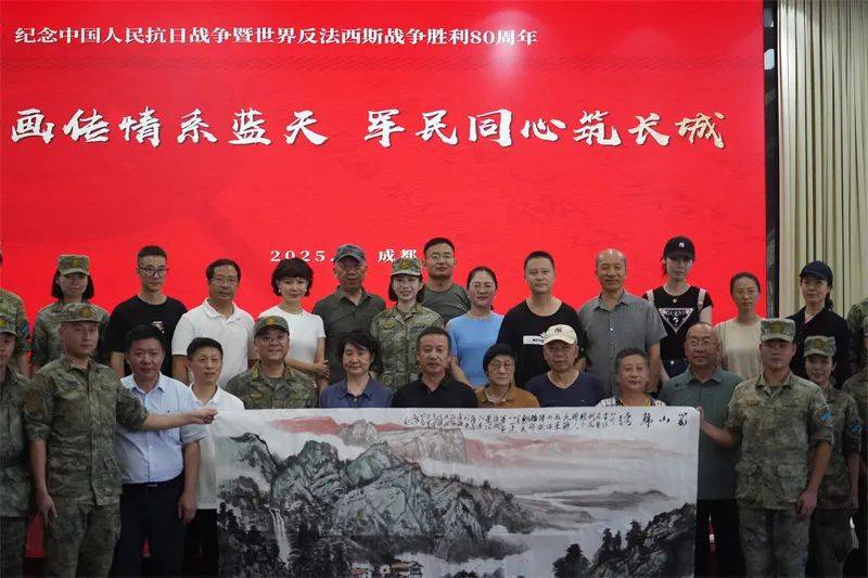 7月30日,由四川省沫若艺术院党支部书记兼副院长邝明惠带队,邀请梁时民、李青稞、龚仁军、钟显金、姚叶红、陈志才、冷柏青、薛磊等二十多名书画家参加了此次活动。当天上午,驻蓉某部队领导和艺术家们参观了飞机博物馆,学习了党史军史,观看了刺杀操展示、枪支分解结合展示、军营摄影展等内容,书画家进一步深入了解了人民军队在党的领导下走过的光辉历程,更深刻感受人民军队现代化建设的新成就。下午,书画家们在部队营区开展了书画笔会活动,共创作了书法、美术作品100余幅,其中不乏精品佳作。此次活动不但提升了驻地官兵艺术修养,丰富了营区精神文化生活,营造了积极向上的文化氛围,更深刻诠释了“军爱民、民拥军”的鱼水情谊。