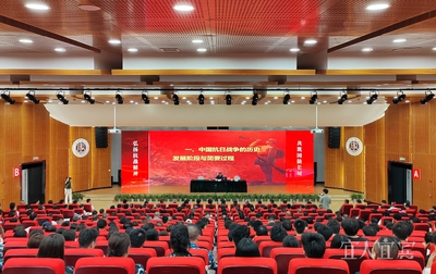 本次报告会邀请到国防大学国家安全学院尹正达教授作题为“中国人民抗日战争与中国共产党的中流砥柱作用”的宣讲。尹教授围绕中国抗日战争的历史发展阶段与过程、中国抗日战争的特点及其在世界反法西斯战争中的地位、中国共产党在全民族团结抗战的中流砥柱作用以及中国抗日战争取得胜利的伟大历史意义等方面,作了一场主题鲜明、内涵丰富、重点突出的宣讲报告。