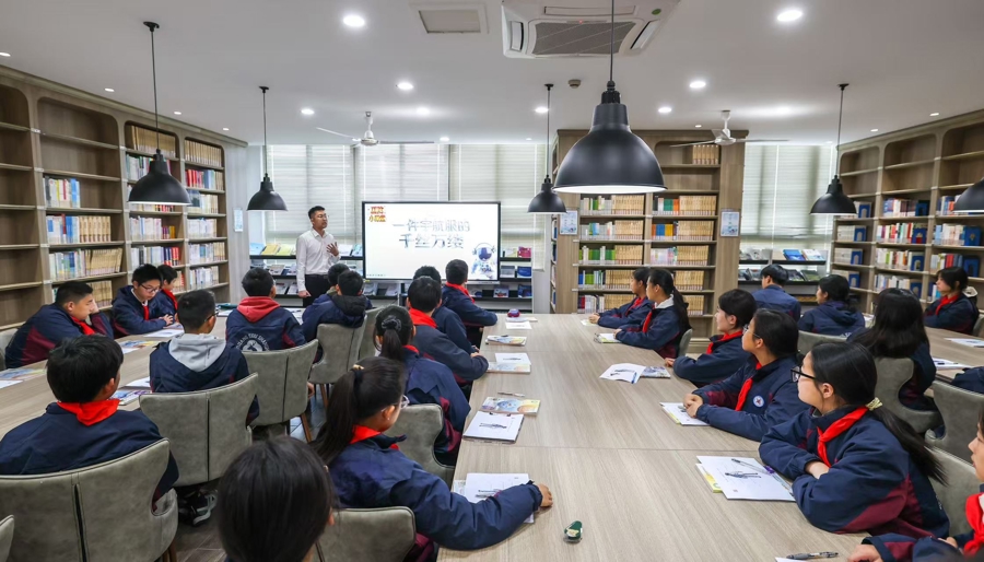 “学校将国家课程校本化,构建‘全员、全程、全方位’国防教育体系,通过国防大讲堂、党带团团带队等多元形式,整合教师、家长与社会力量,让国防教育融入日常教学,引导学生厚植爱国情怀。”校长李燕华介绍,学校始终以课程为载体,推动国防教育入脑入心,助力青少年树立家国情怀。