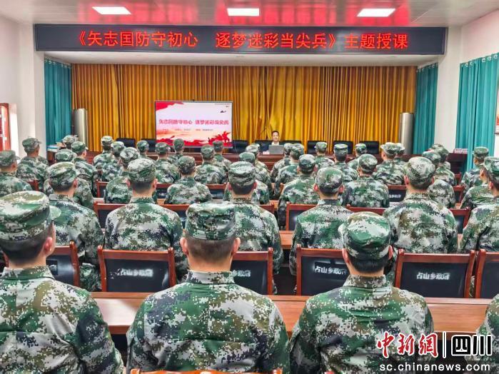 西充县委宣传部工作人员为预定新兵们授课。西充县委宣传部供图
