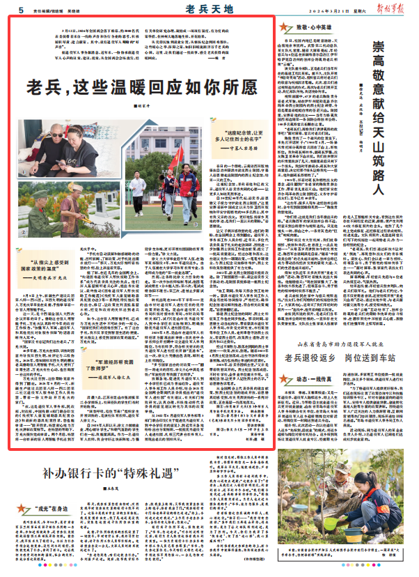 从优待抚恤到就业安置,从褒扬纪念到困难帮扶,这些暖心之举、保障之策,如汩汩暖流润泽万千老兵的心田。这里,让我们通过一组故事,感受老兵获得的温暖回应。